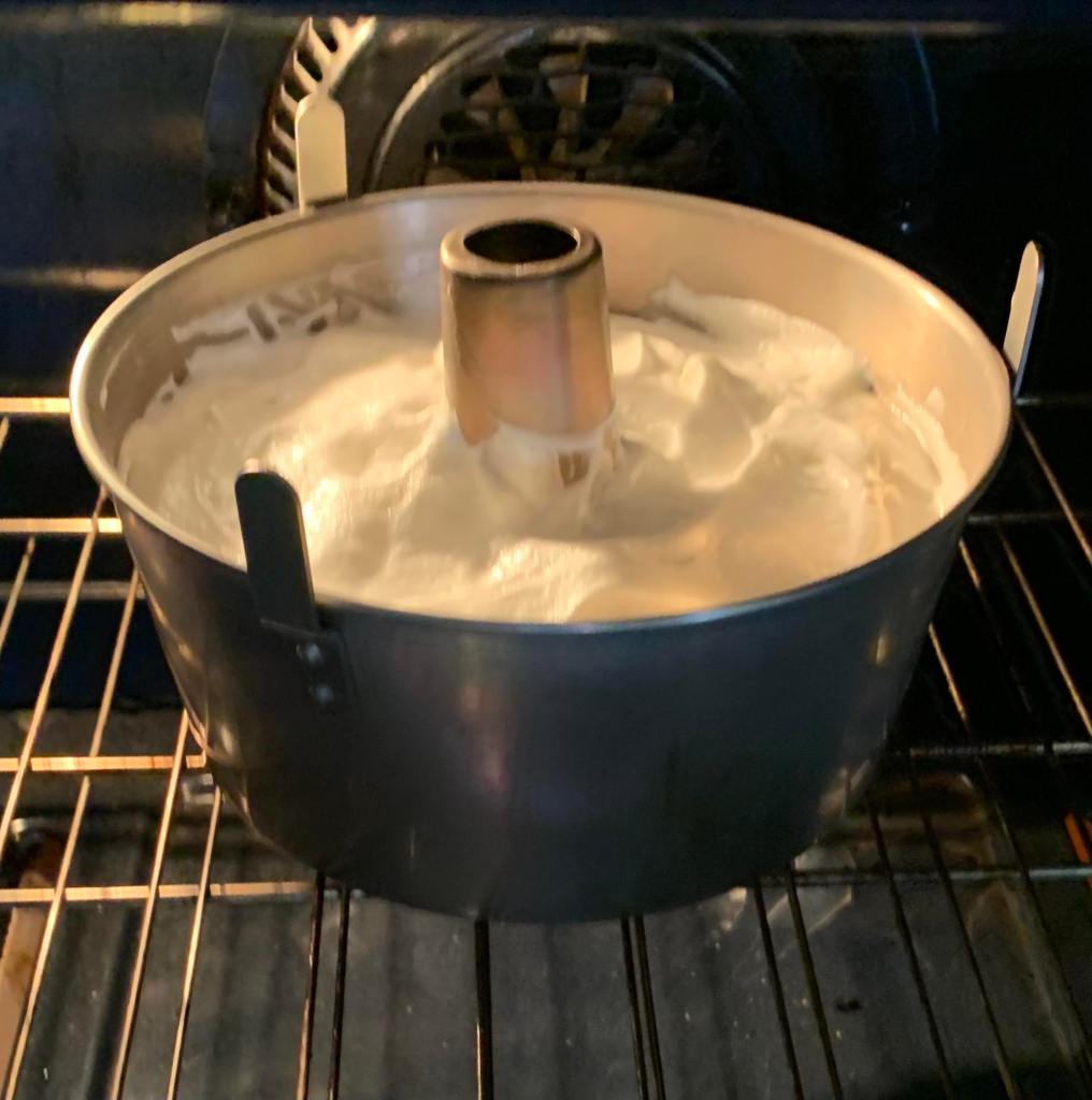 Time to plop the billowy, pillowy goodness all into our rarely used angel food cake pan.