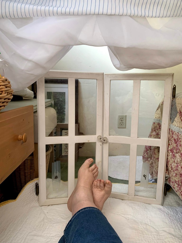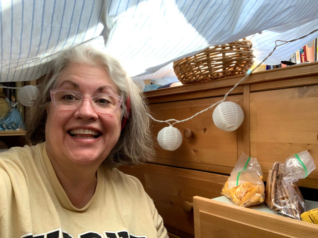 In addition, I create some focal points, like many of you do as well, with tiny pumpkins from Trader Joe’s around the house for a pop of fall color. Those can be tossed at the end of the season. No storage needed. Sometimes I toss them in a field to feed some critters. I like to fill a small glass vase with candy corn. That decoration seems to disappear by the time trick-or-treating is over. And, of course, faux candles with timers warm the home with light. Candles can be used all year.