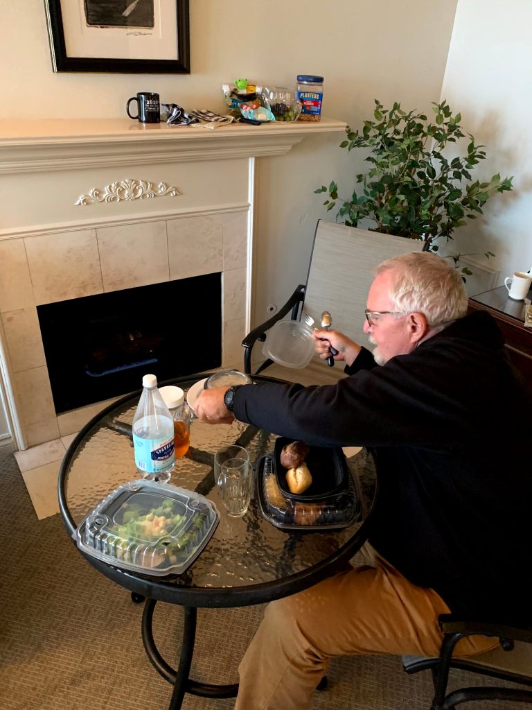 We had a lovely time. We did practice social distancing by simply relaxing in the room or sitting out on the balcony, except to go pick-up food. We followed the requirement to wear a mask when we were outside our room. We washed our hands. And hoped for the best.