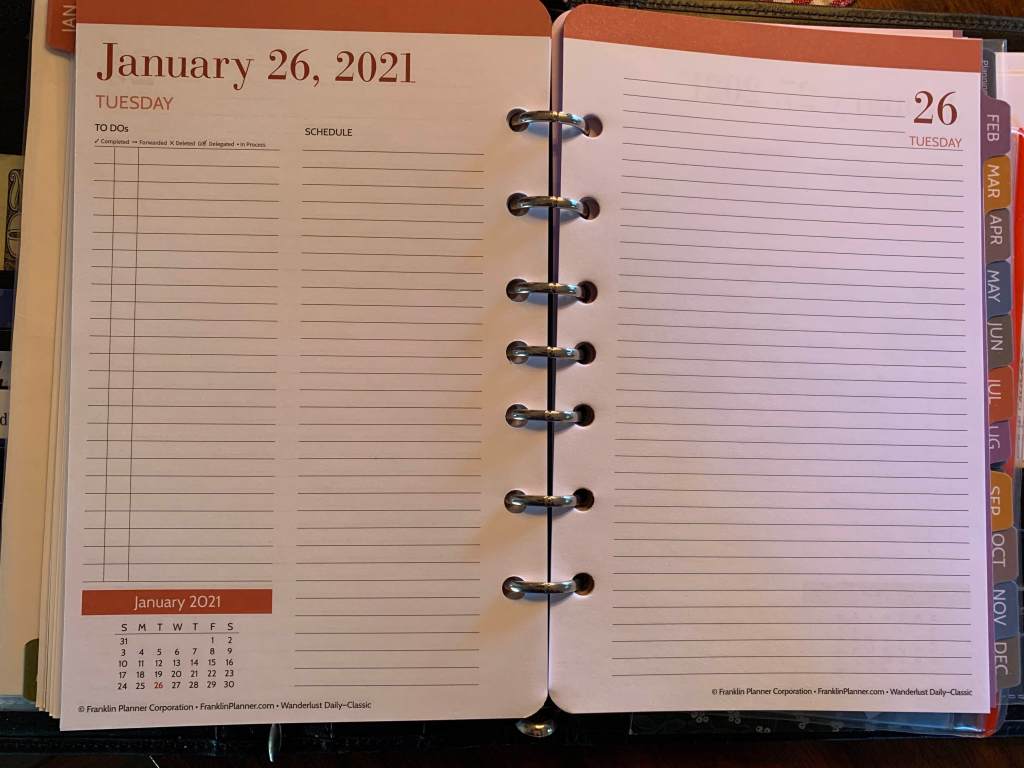 I like Franklin Planners for a variety of reasons and keep coming back to them. I was required to use one as part of my graduate studies in educational leadership, and that is something that has helped me to this day. When priorities are important, planning is the tool for success.