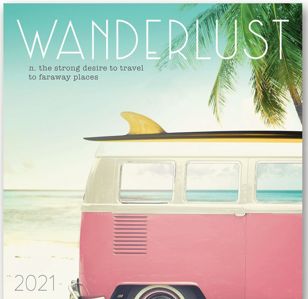 - Wanderlust Wall Calendar: We post a 12-month wall calendar in the kitchen to communicate housemate dishwasher duty rotation, monthly house dinners, reserving the kitchen or living room for guests, and the dinner duty schedule for my husband and me. (Photo below.)